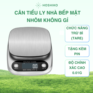 Cân Tiểu Ly Điện Tử Nhà Bếp mặt nhôm Hoshiko – Model 602– Định Lượng Chính Xác 1g–3kg (Tặng Kèm 2 Pin AA)